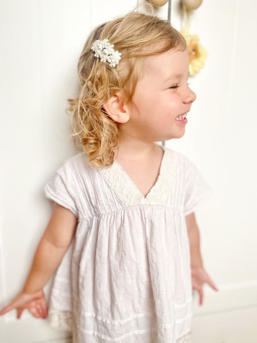 We offer a huge selection of beautiful hair accessories including dainty clips, headbands, crochet clips, bows & soft back clips. Our hair accesories are comfortable & stylish for your little one.