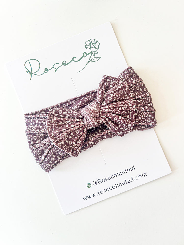 Our beautiful plum floral cable knit headband is suitable for newborn babies to children aged 6 years old (approximately). One size really does fit all, will last your little one many years! All of our headbands are made from cotton & nylon blend making them soft & super stretchy perfect for you little one! They are also very comfortable!