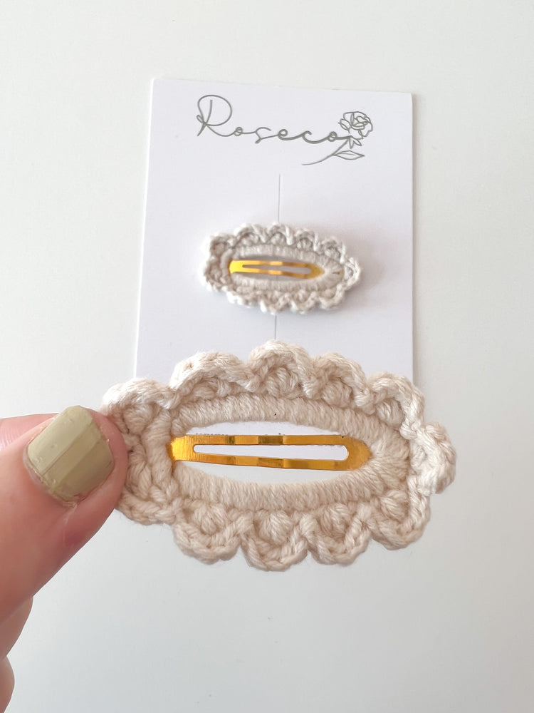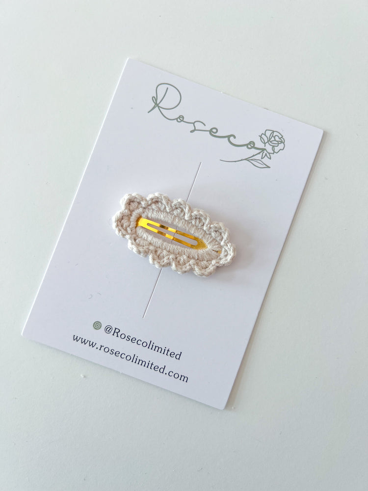 Our beautiful beige crochet clip is sold individually and is perfect for clipping back little fringes and can be added to any hairstyle.