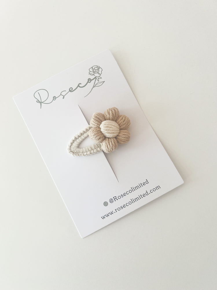 Caramel Puff Flower Crochet Clip
