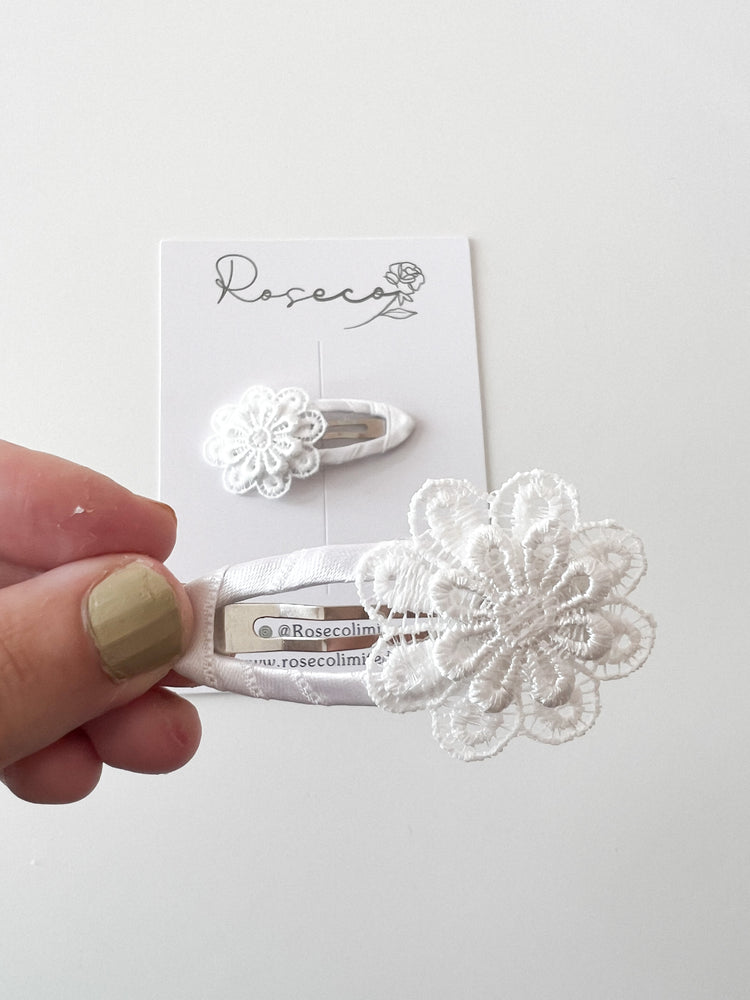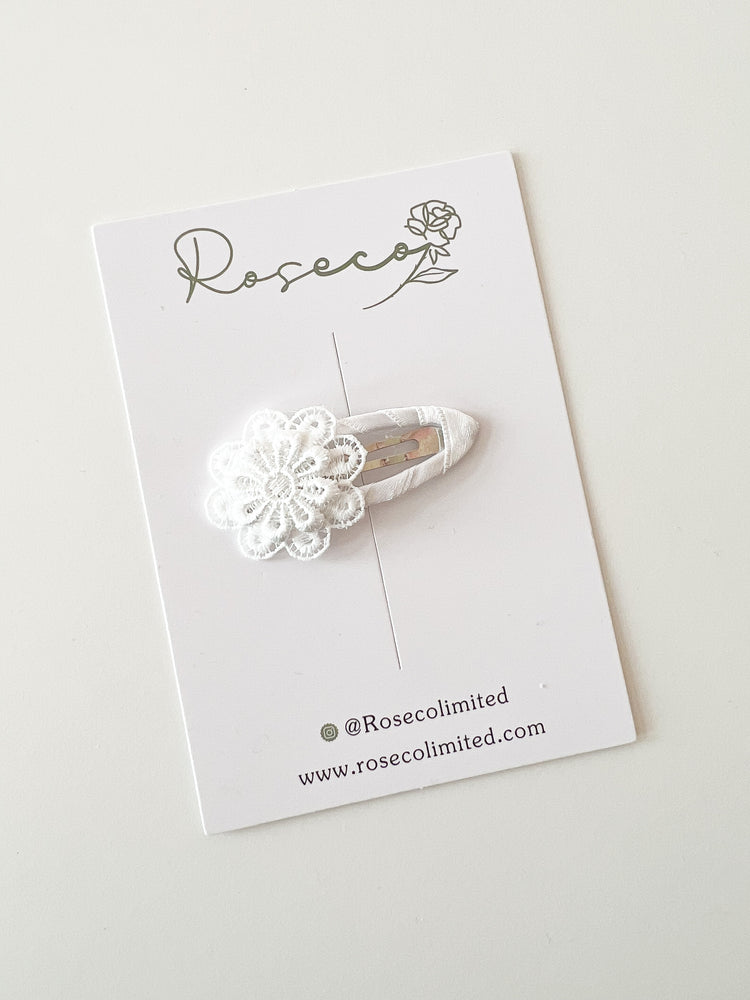 White Lace Flower Snap Clip