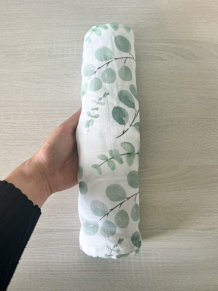 Organic Bamboo Muslin Swaddle Blanket- Eucylptus