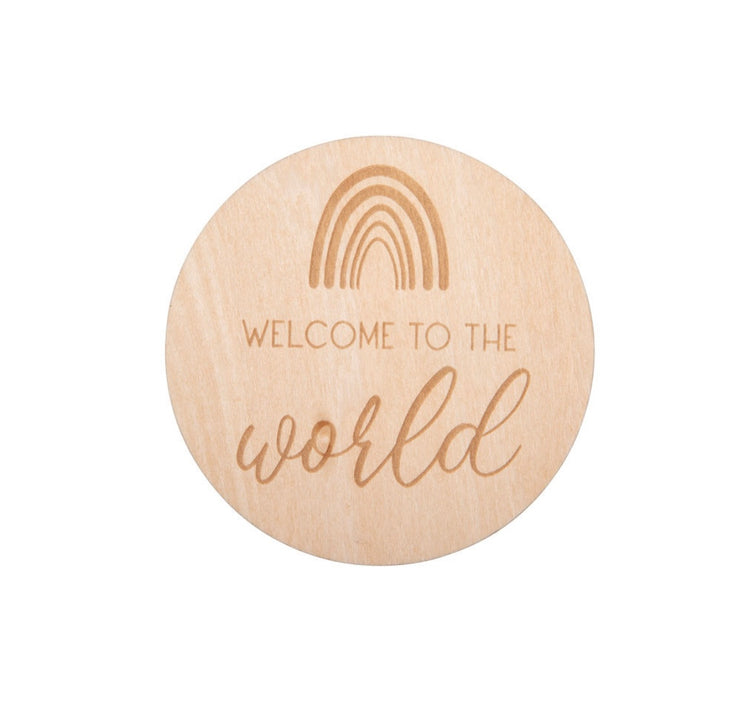 Our disc is two sided with the reverse 'welcome to the world’ making a lovely photo prop when your baby arrives!