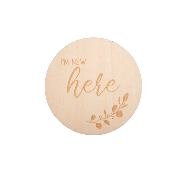 Our disc is two sided with the reverse 'I’m new here’ making a lovely photo prop when your baby arrives!