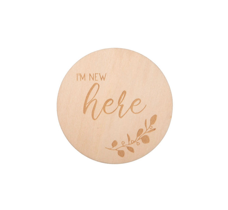 Our disc is two sided with the reverse 'I’m new here’ making a lovely photo prop when your baby arrives!