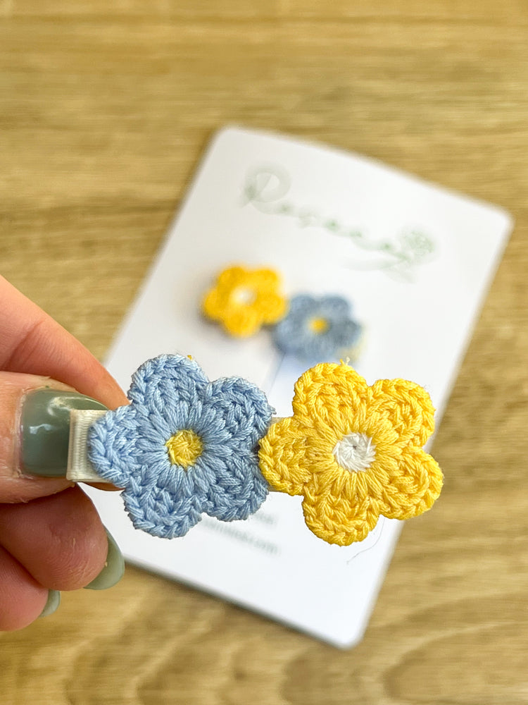 Our beautiful summer flower crochet soft back clips come as a set of two and are perfect for clipping back little fringes!