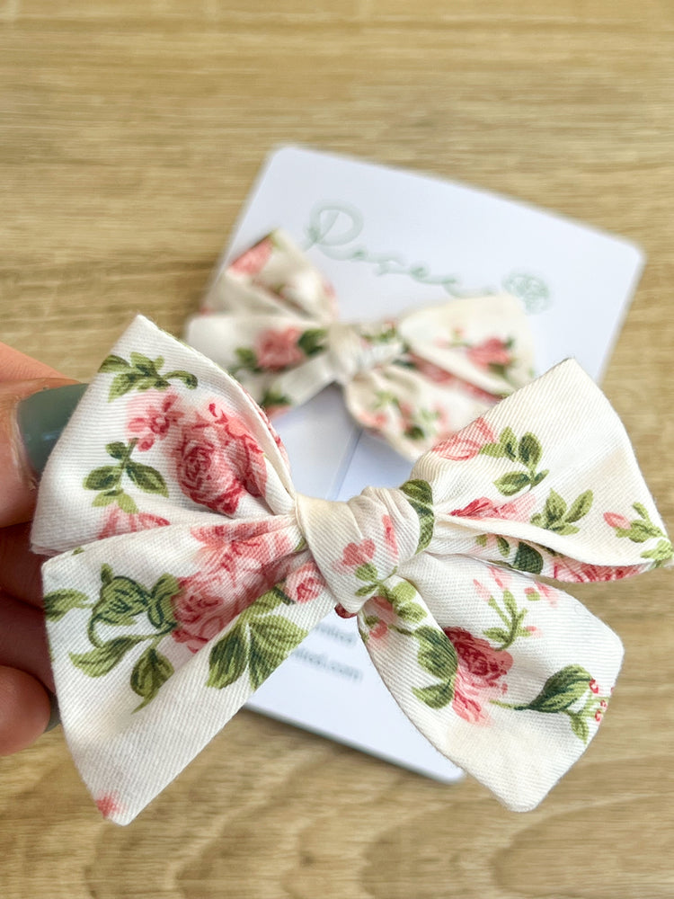 Our beautiful pink rose pigtail bows come as a set of 2 which are the perfect accessories for your little ones hair, especially for pigtails! Our bows are on alligator clips and approximately cm long.