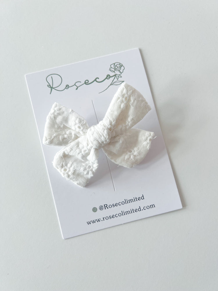 Our beautiful embroidered bow clip is the perfect addition for your little ones hairstyle! Each bow is on an alligator clip and they are approximately 5cm long.