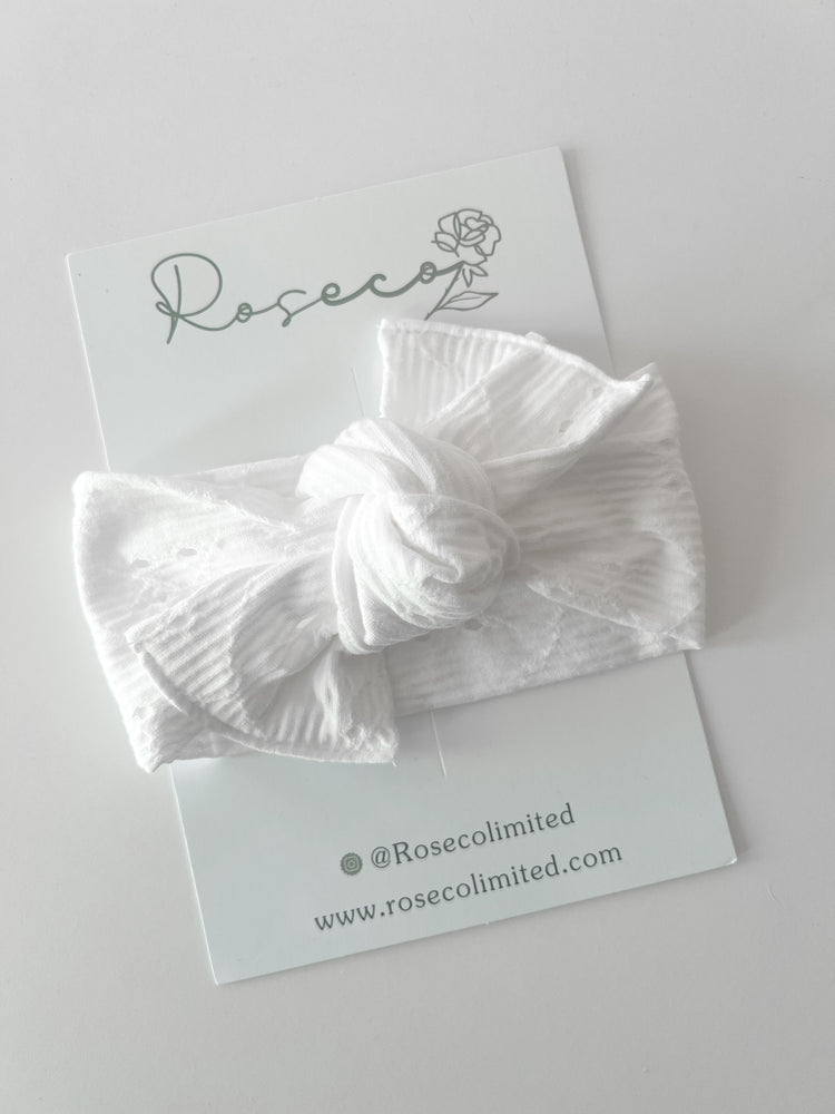 Our beautiful white embroidered headband is suitable for newborn babies to children aged 6 years old (approximately). One size really does fit all, will last your little one many years! All of our headbands are made from cotton & nylon blend making them soft & super stretchy perfect for you little one!