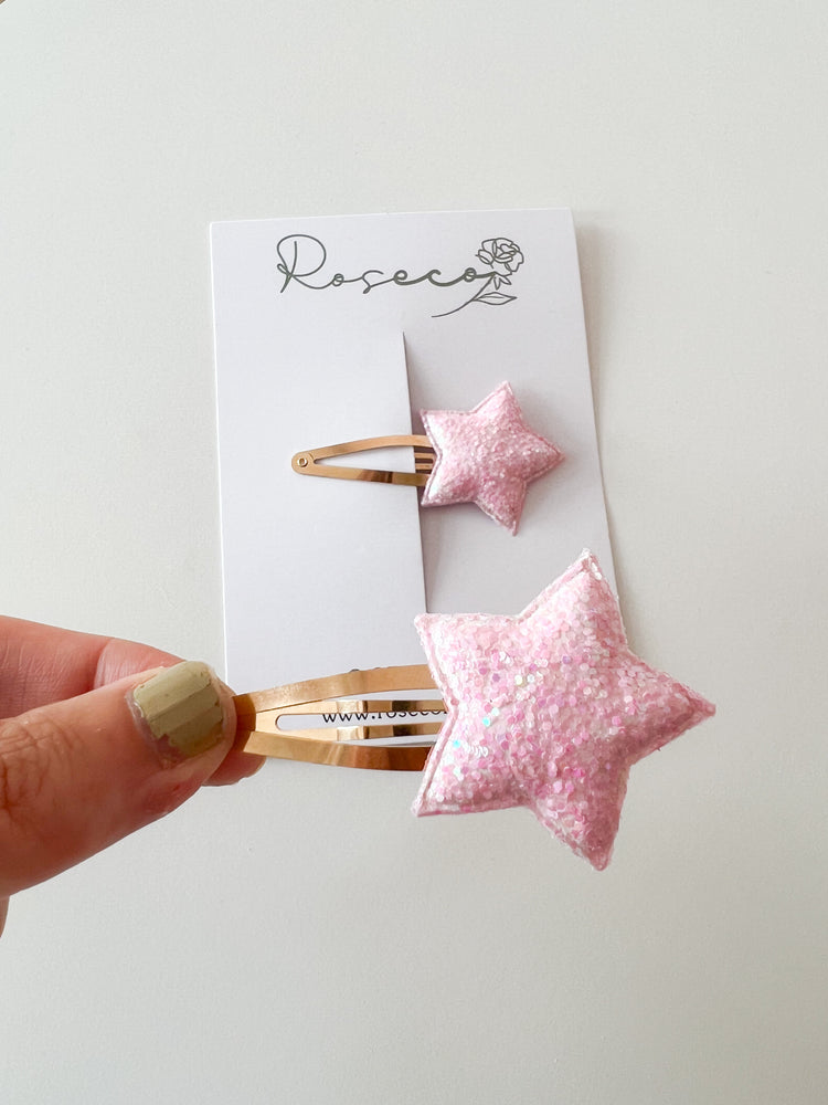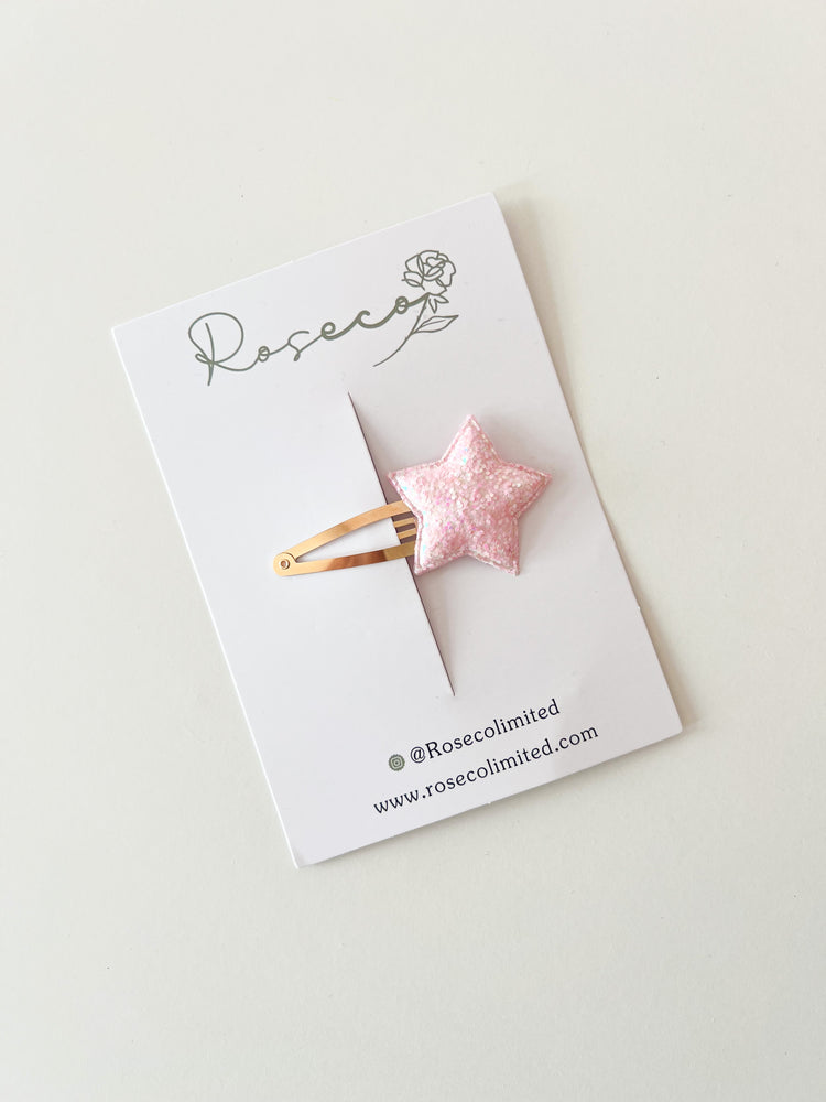 Our beautiful glitter star hairlip is available in 4 different colours and is perfect for clipping back little fringes and adding something special to their hairstyle!