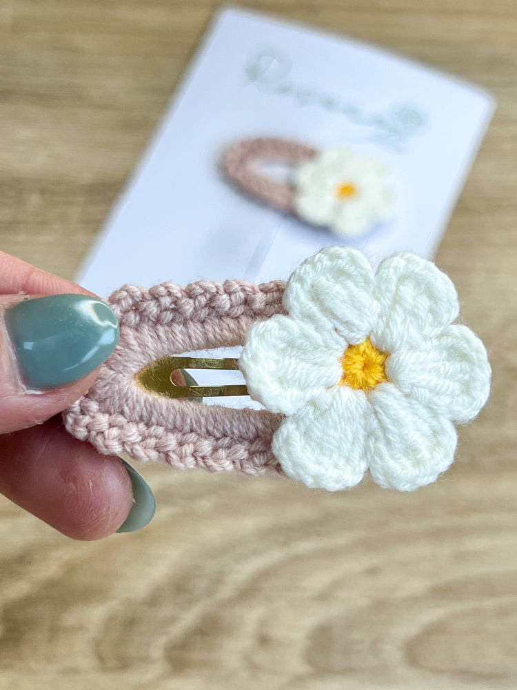 Dusky Pink Flower Crochet Snap Clip