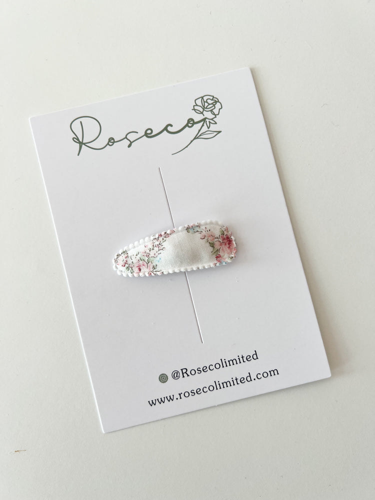 Our beautiful floral dream snap clip is sold individually and is perfect for clipping back little fringes and can be added to any hairstyle.