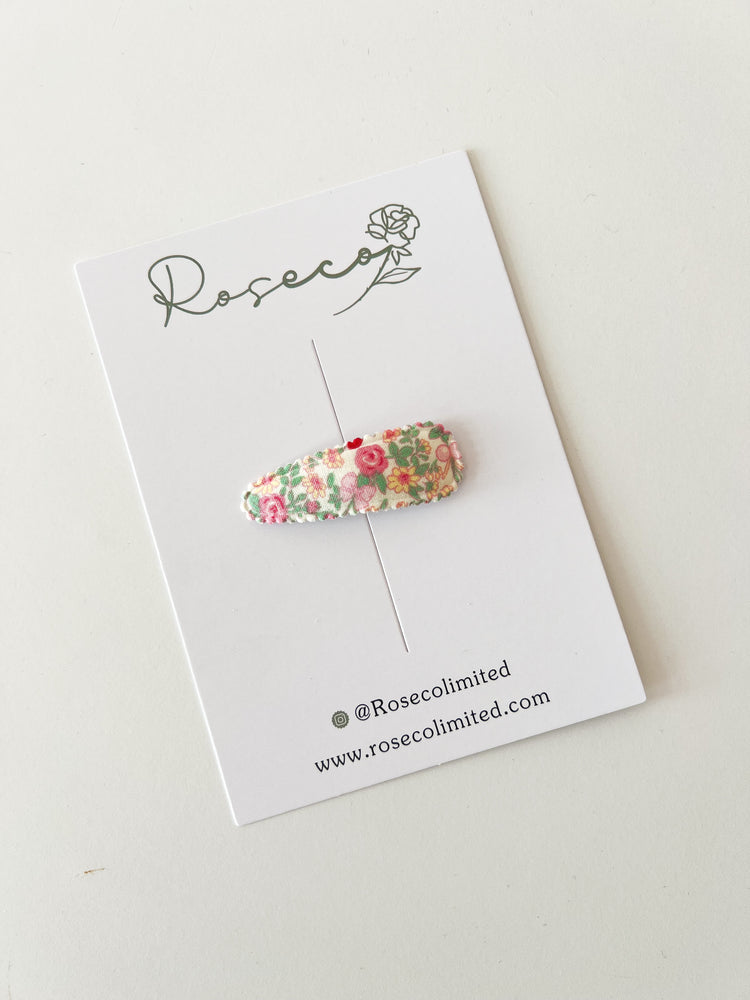 Our beautiful flower garden snap clip is sold individually and is perfect for clipping back little fringes and can be added to any hairstyle.