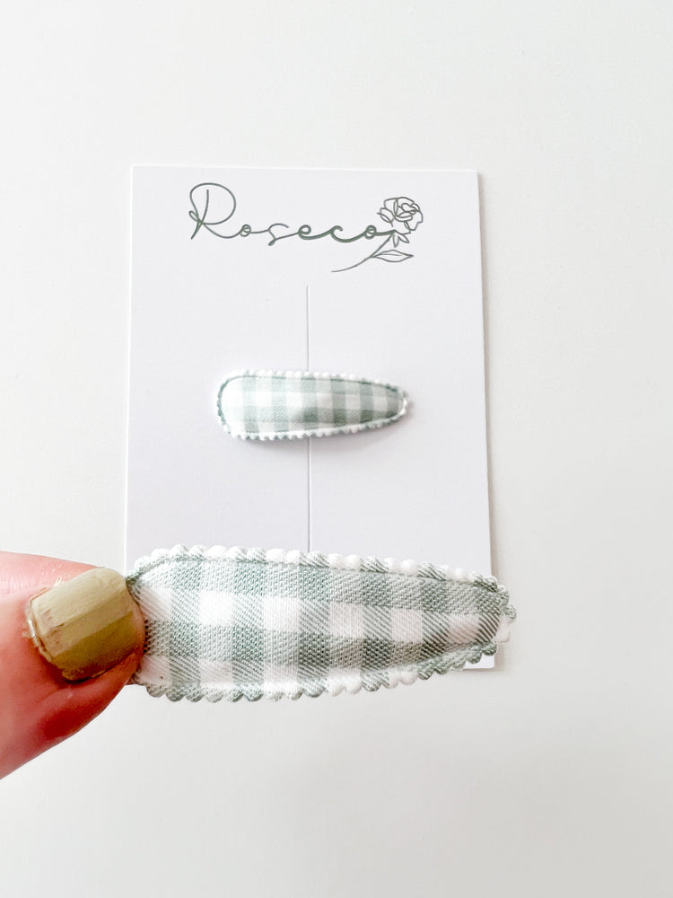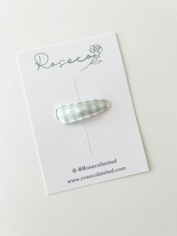 Our beautiful green snap clip is sold individually and is perfect for clipping back little fringes and can be added to any hairstyle.