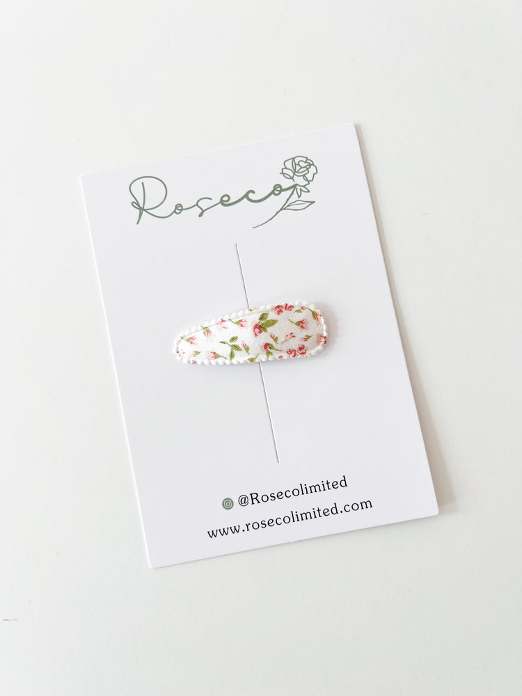 Our beautiful rosebud snap clip is sold individually and is perfect for clipping back little fringes and can be added to any hairstyle.