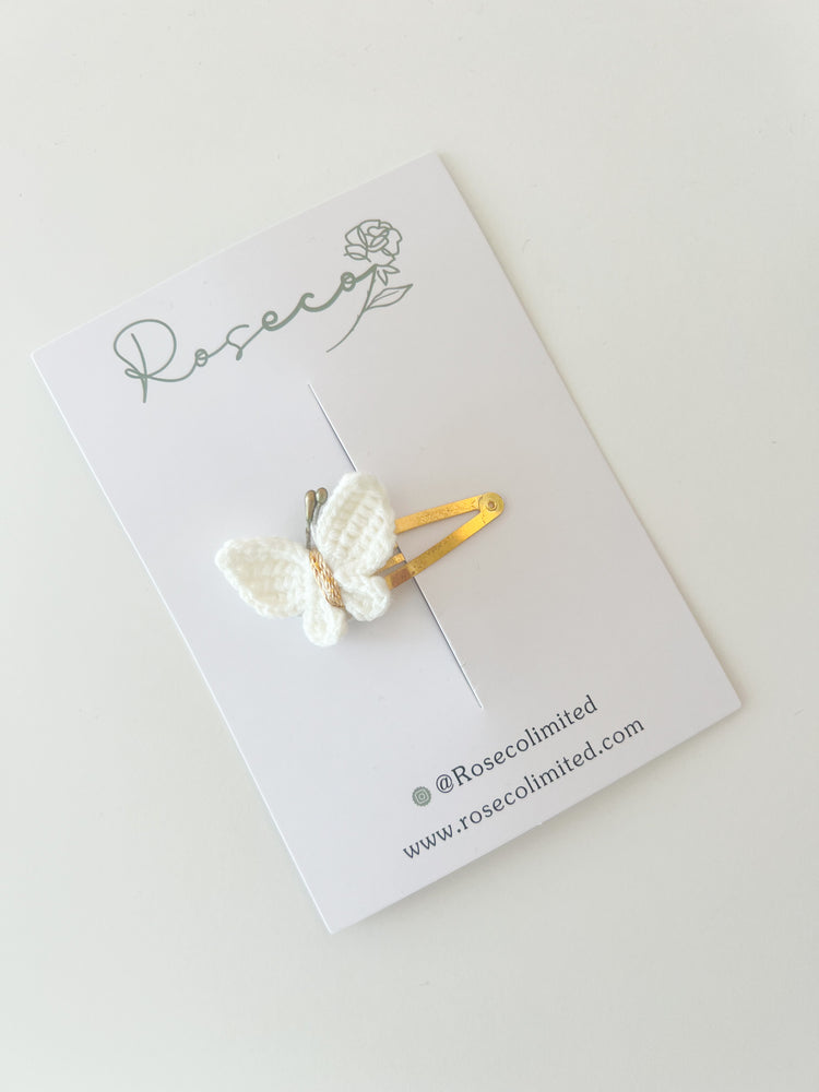 Our beautiful white crochet butterfly clip is sold individually and is perfect for clipping back little fringes and can be added to any hairstyle.